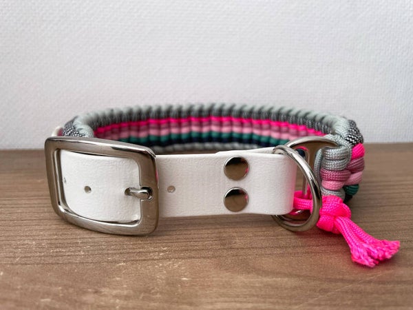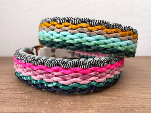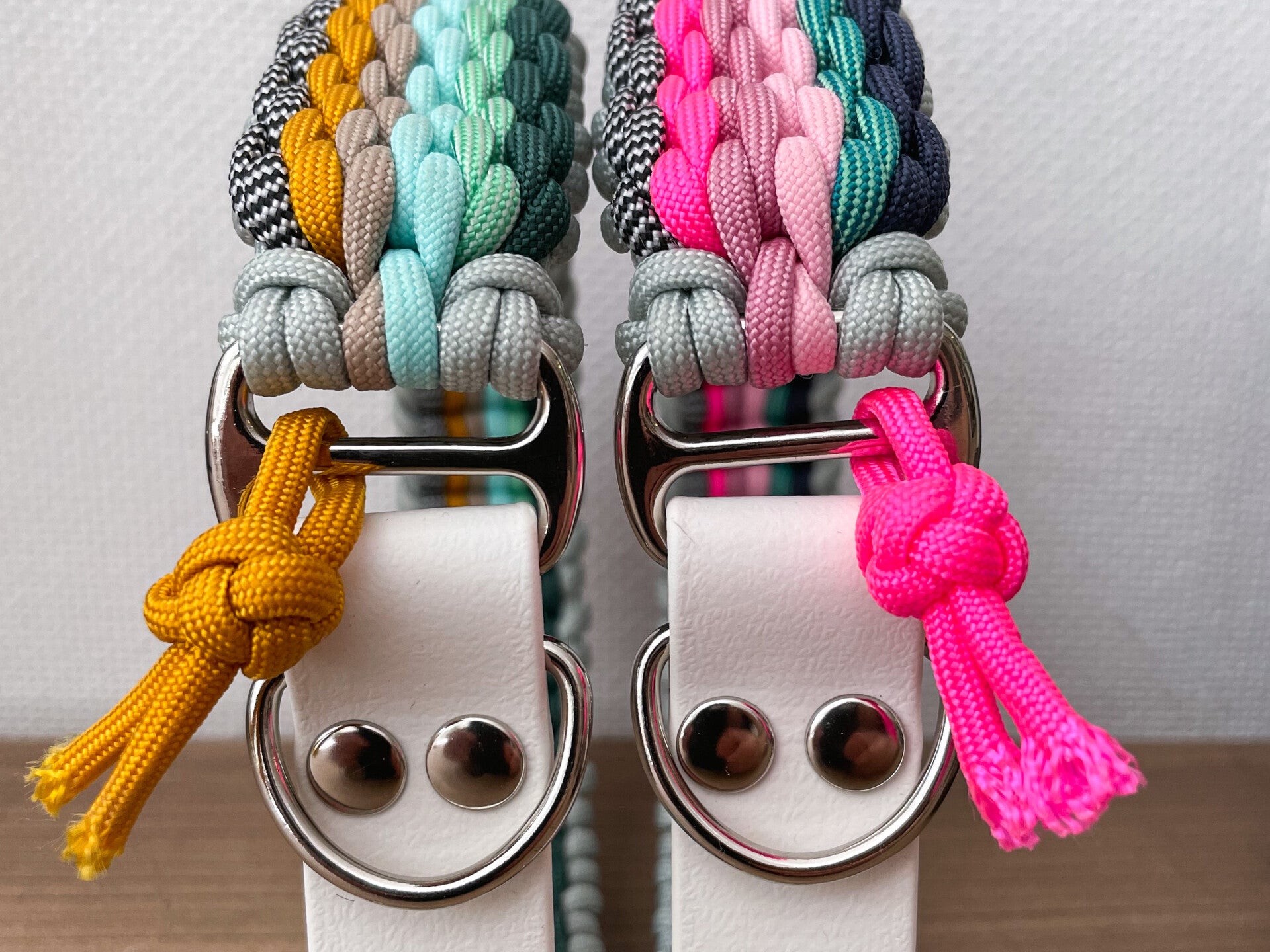 Das Halsband ASKELLA wird aus hochwertigem Paracord 550 in zwei verschiedenen Farbkombinationen hergestellt. Jedes Exemplar wird von mir mit Liebe geflochten und individuell für dich nach Wunschmaß gefertigt.