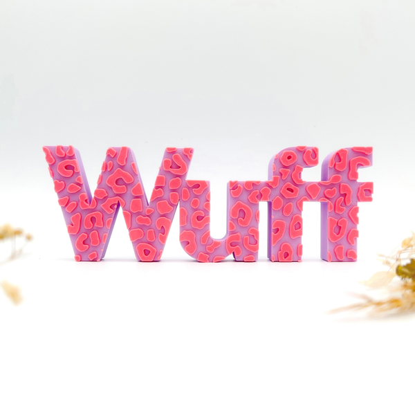 Der Deko-Aufsteller „Wuff“ in moderner Leopardenoptik ist ein echtes Statement-Piece für alle Fellnasen-Liebhaber. Mit seinem schicken Schriftzug und der auffälligen Oberfläche eignet er sich perfekt, um deiner Wohnung das gewisse Etwas zu verleihen oder jemandem eine besondere Freude zu machen. Stelle einfach deine Lieblings-Farbkombination zusammen und setze ein stylisches Statement.